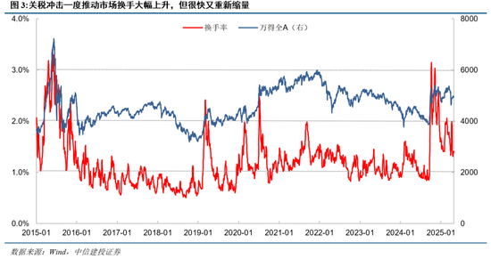 换手率:关税冲击在清明节后推动市场换手大幅上升。随着指数价格的修复和后续关税政策不确定性仍然巨大,市场很快重新缩量,全A换手率最终降至1.4%以下。